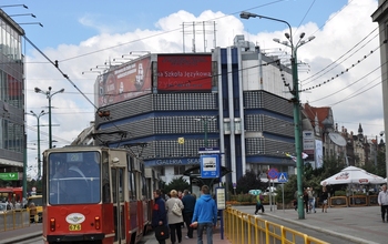Digital advertising billboard, LED outdoor display, Katowice, Chorzowska, center of the city.