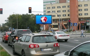 Digital advertising billboard, LED display outdoor, Warsaw, Żwirki i Wigury, close to airport.