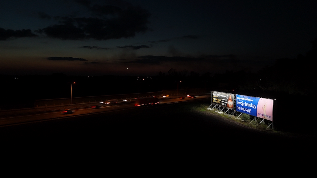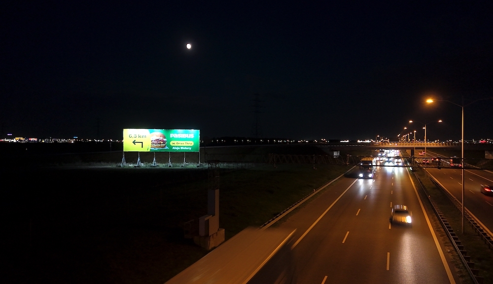 Ekspozycja 24/7 – dzięki oświetleniu Twoja reklama jest czytelna zarówno za dnia, jak i nocą.