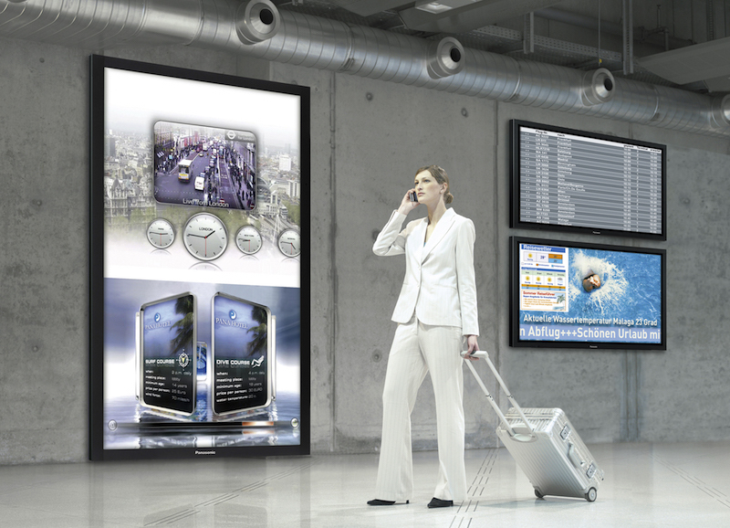 - Ekrany LCD 55'' Kolumny przed stanowiskami check-in 6 szt.