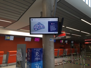 • 5 ekranów LCD 55” na słupach przy check-in, hala ogólnodostępna