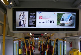 Ekrany reklamowe LCD w wagonach SKM w Warszawie.