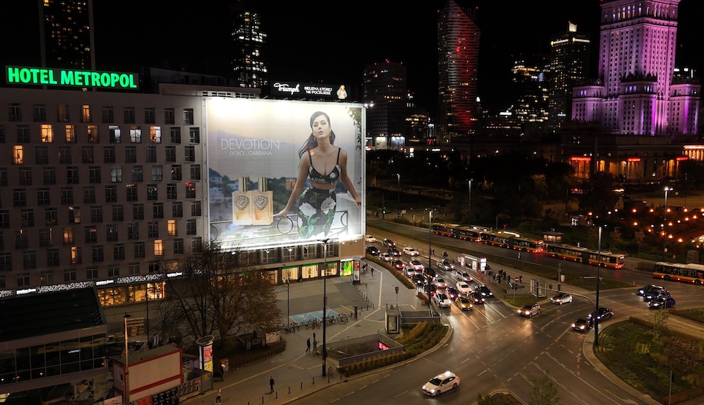 - powierzchnia wielkoformatowa zlokalizowana jest na budynku Hotelu Metropol przy ulicy Marszałkowskiej, doskonale widoczna z Ronda Dmowskiego i Alei Jerozolimskich