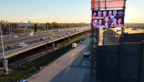 Umiejscowiony na prawej stronie najazdu, ekran jest idealnie ustawiony, aby przyciągać uwagę ogromnej liczby pojazdów.