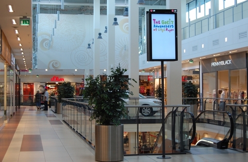 Ekrany reklamowe LCD i LED w centrum handlowym Galeria Jurajska w Częstochowie.