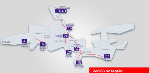 Ekrany LCD: na trasie Katowice, Sosnowiec, Chorzów, Bytom, Gliwice, Zabrze