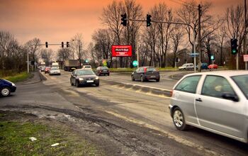 Telebim Gliwice – skrzyżowanie na zjeździe z węzła Sośnica.