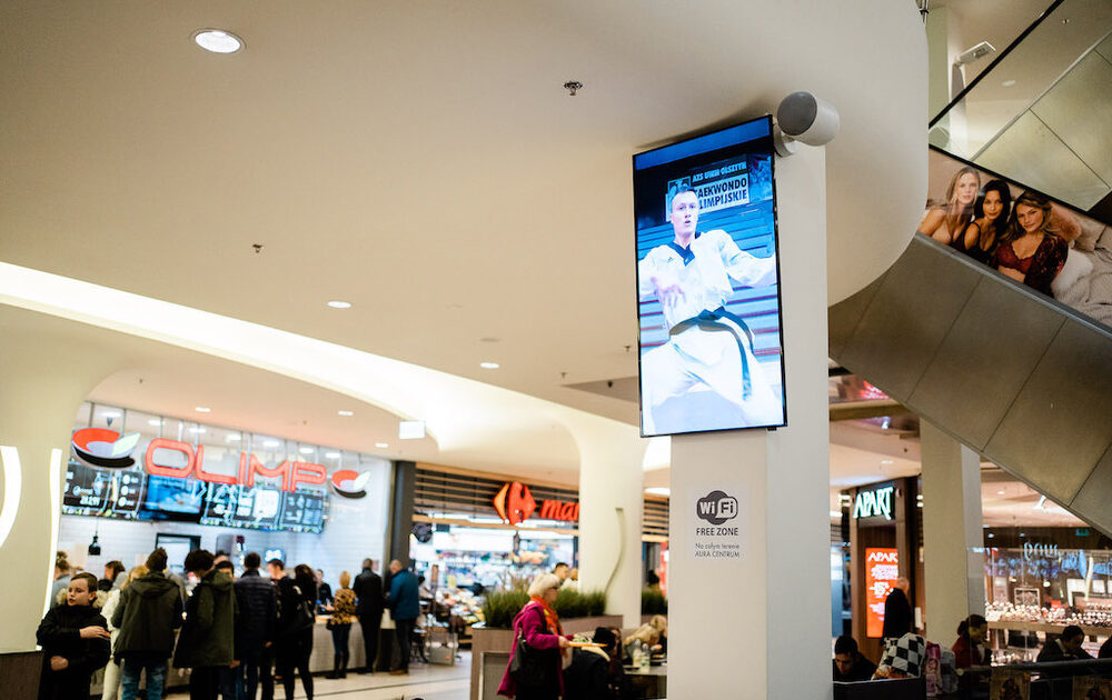 | reklama w centrum handlowym AURA w Olsztynie | reklama w galerii Aura Olsztyn | reklama w Galeriach Olsztyn | ekrany reklamowe w galeriach Olsztyn |