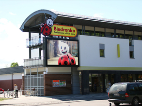 - ekran reklamowy LED umieszczony na markecie Biedronka działającym 24h, będącym najbardziej dochodowym sklepem sieci w Polsce w miesiącach letnich