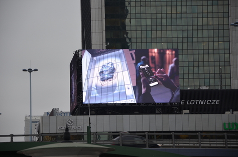 - podwójny ekran reklamowy LED umiejscowiony na dachu Hotelu Marriott na skrzyżowaniu Alei Jerozolimskich, Chałubińskiego i Jana Pawła II