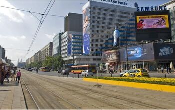Digital advertising billboard, LED outdoor display, Warsaw, Daszyńskiego, center of the city.