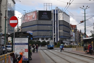 Digital advertising billboard, center of Katowice, top location
