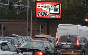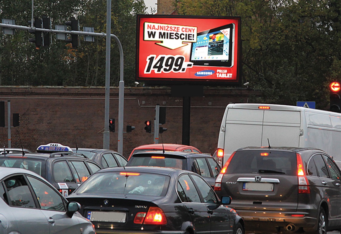 Digital advertising billboard, LED outdoor display, Katowice, Bracka, center of the city.