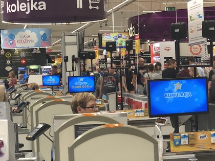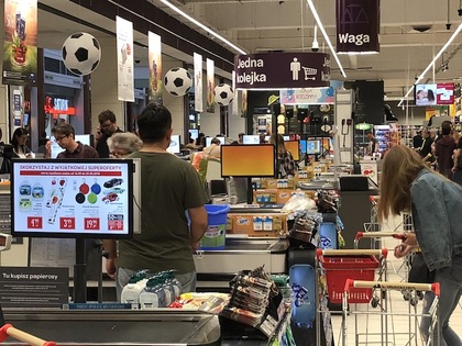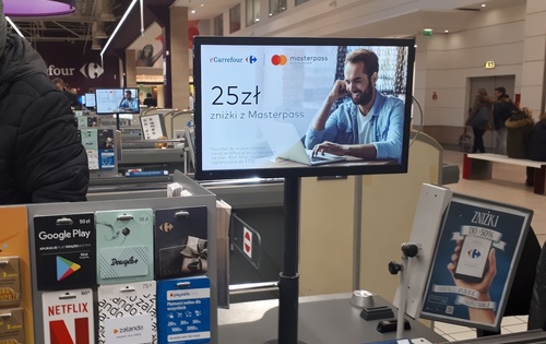Ekrany Reklamowe przy kasach w sieci Carrefour
