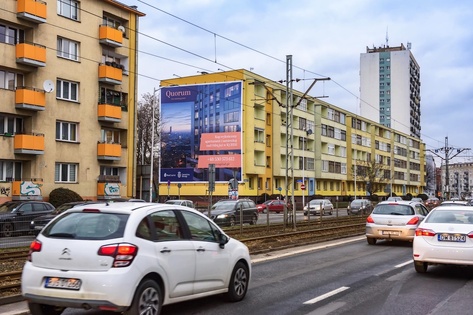 Reklama wielkoformatowa zlokalizowana w centrum miasta, widoczna w kierunku centrum tuż przed Placem Legionów – jednego z największych hubów komunikacyjnych miasta.