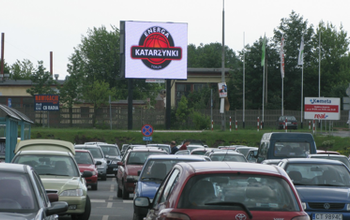 - Telebim zlokalizowany przy centrum handlowym Kometa. Ulica Wielki Rów jest trasą wjazdową do Torunia od strony Gdańska.