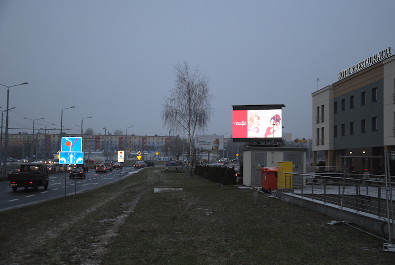 - Telebim reklamowy znajduje się przy Hotelu Piano, w okolicy centrum handlowego i kościoła