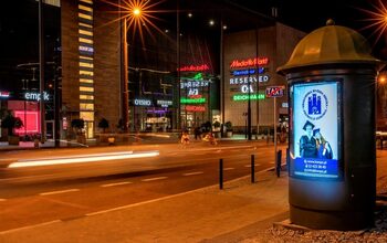 Ekrany LCD na słupie reklamowym w centrum Krakowa, vis a vis wejścia do Galerii Krakowskiej