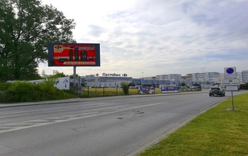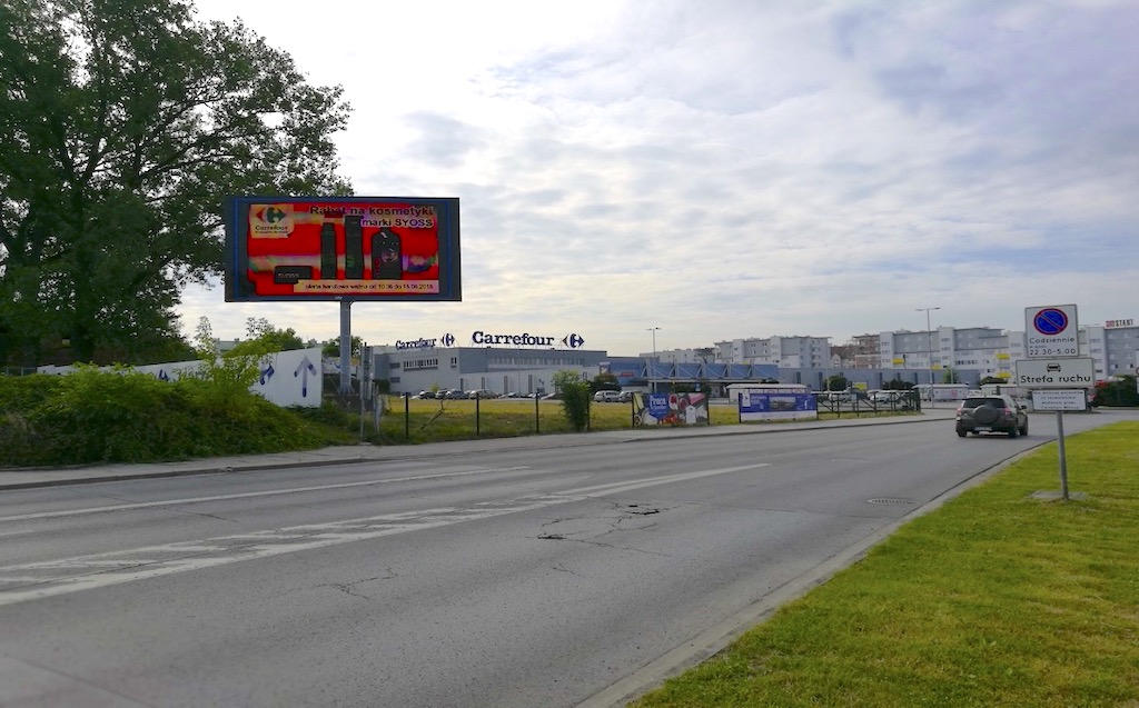 - ekran reklamowy LED zlokalizowany przy wjeździe na parking supermarketu Carrefour na ul. Witosa w Krakowie