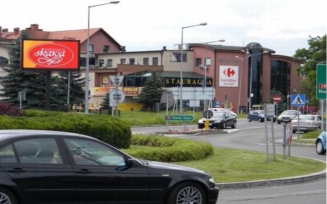 - Ekran znajduje się w Wadowicach bezpośrednio obok supermarketów ,stacji benzynowych BP, ORLEN, na terenie SKAWA WADOWICE.
