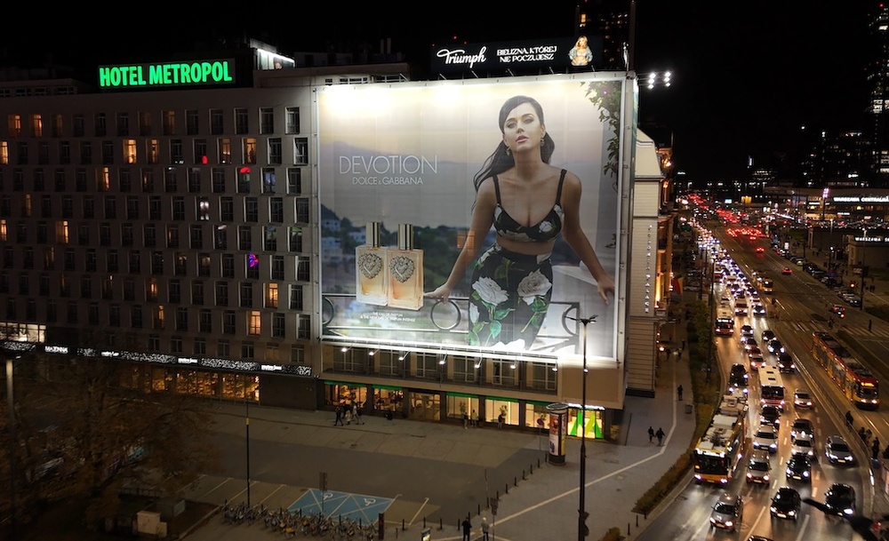 - powierzchnia wielkoformatowa zlokalizowana jest na budynku Hotelu Metropol przy ulicy Marszałkowskiej, doskonale widoczna z Ronda Dmowskiego i Alei Jerozolimskich