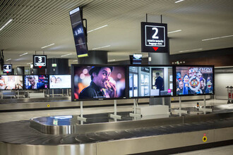 - 12 screens 65 " in two baggage halls