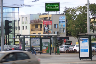 Ekran reklamowy LED znajduje się przy skrzyżowaniu ulic Przebendowskich i Olchowej.