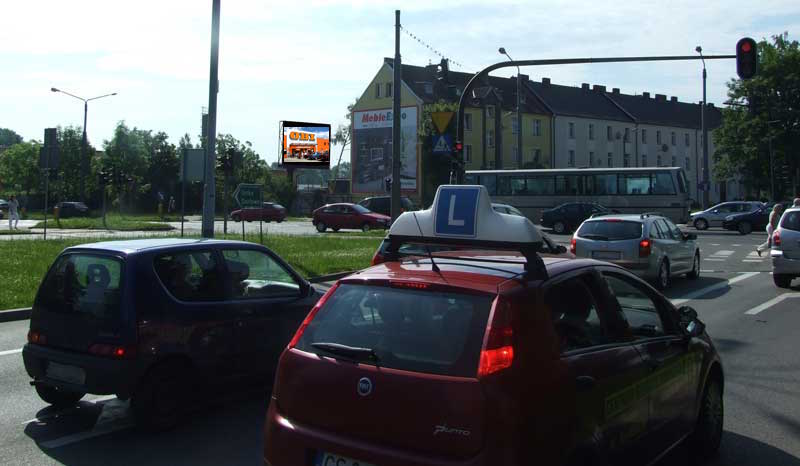 - telebim o powierzchni 20 m2, bardzo dobrze widzialny dla kierowców jadących trzema pasami ul. Szczecińskiej jak również jadących trzema pasami z ronda przy ulicy Sobieskiego.
