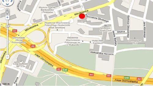 - Katowice ul Mikołowska 54 obok sygnalizacji świetlnej, przy wjeździe do centrum miasta z dzielnic południowych (Ligota, Piotrowice), Mikołowa, oraz zjazdu z autostrady A4. Obok ekranu LED znajduje się AWF, stacja benzynowa, 2 przystanki autobusowe obsługujące ponad 800 odjazdów autobusów dziennie na 30 liniach