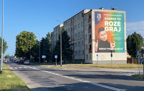 Ściana budynku zlokalizowana przy tym adresie oferuje bardzo dobrą ekspozycję reklamy wielkoformatowej. Nośnik znajduje się w naturalnym polu widzenia kierowców i pasażerów, a charakter ruchu (skrzyżowania, spowolnienia, dojazdy do obiektów handlowo-usługowych) wydłuża czas kontaktu wzrokowego z przekazem. Dzięki temu reklama nie jest jedynie krótkim impulsem, lecz czytelnym i zapamiętywalnym komunikatem.