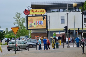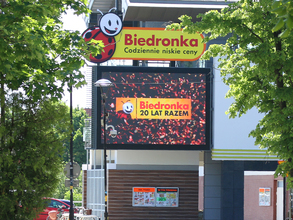 - ekran reklamowy LED umieszczony na markecie Biedronka działającym 24h, będącym najbardziej dochodowym sklepem sieci w Polsce w miesiącach letnich
