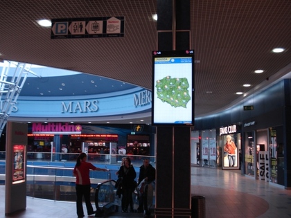 Ekrany reklamowe LCD w centrum handlowym Galaxy w Szczecinie.